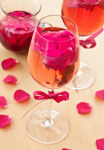 A light and fruity cocktail: champagne mixed with pomegranate juice and pomegranate chunks.